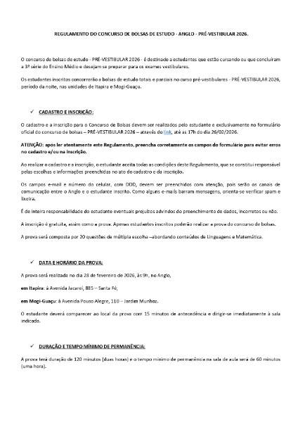 Concurso de Bolsas Pré-Vestibular Anglo Itapira Mogi 2026 (Extensivo Noturno)